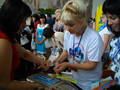 Но если Вы думаете, что проект предполагает только «книгу в руки и читать» то Вы ошибаетесь. Жизнь штука активная и чтобы заинтересовать, познакомить, рассказать о книге, – надо проводить интерактив. Вот на страничке библиотечного сайта (http://www.libr.dp.ua/Dn_OG/Dn_OG.htm ) можно посмотреть информацию о проекте. А на Ярмарке были представлены интеллектуально-развлекательные формы привлечения к чтению.