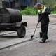 Рабочие очищали подготовленные участки и после укладывали на них асфальтную смесь.