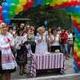 На торжественной линейке, посвященной 20-летию УВК, прозвучал гимн Украины. Своим "танцем цветов" учеников приветствовали дошкольники.