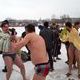 Парочка отчаянных родителей попыталась окунуть в прорубь ребенка, однако истошные вопли девочки их остановили.