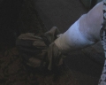 Осколки очень сильно ударило женщину. В 6-й горбольнице женщине поставили диагноз: "закрытый перелом лодыжки правой голени и рваная рана второго и третьего пальцев левой руки". Женщину после предоставления первой медицинской помощи, наложения гипса, и т.п., родственники забрали домой.