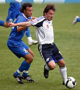 Старания “Днепра” в конце концов принесли свои плоды. После подачи штрафного удара, назначенного за снос вблизи углового флажка Давидсона, Климавичюс с нескольких метров головой переправил мяч в ворота. Правда, практически сразу днепропетровцы могли и пропустить. После обрезки в середине поля Грицая лишь отчаянный подкат Андриенко прервал выход к воротам Старцева двоих россиян. Но концовка встречи вновь была за “Днепром”.