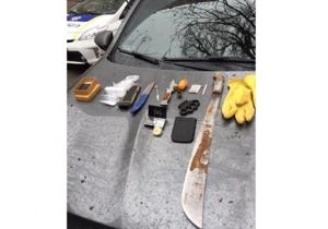 Во время обыска в автомобиле «Nissan Qashqai», кроме марихуаны и метамфетамина, у мужчины обнаружили также оборудование для употребления наркотиков и большой арсенал холодного оружия. В частности, полицейские изъяли самодельный мачете, ножи и кастет.