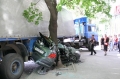 Автомобиль МАЗ двигался по направлению вниз проспекта Кирова, водитель МАЗа не справился с управлением и для того, чтобы избежать столкновения с впереди идущим транспортом выехал на тротуар, по ходу движения зацепил стоящий у обочины автомобиль Peugeot 207 и в буквальном смысле слова раздавил его прицепом об дерево, которое росло на тротуаре. Автомобиль МАЗ так же как и его прицеп практически не получил повреждений, чего не скажешь о другом автомобиле. Peugeot 207 был превращен в продукт вторсырья, т.к. восстановлению не подлежит, в момент аварии в авто находился один пассажир, который чудом не пострадал, работникам прибывшей на место аварии службы МЧС пришлось вырезать специальным инструментом детали кузова, для того чтобы вынуть пострадавшего из авто.