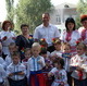 Все присутствующие собрались вокруг реконструированного фонтана, где в ходе праздничной программы для них пели солисты фольклорно-этнографического коллектива «Калина», с показательным номером выступала местная команда детей, занимающихся восточными единоборствами, пели, танцевали и читали стихи воспитанники детского сада № 41 «Посмішка». Малыши также вручили городскому голове на память глиняный презент, выполненный в форме сердечка с петриковской росписью, а он, в свою очередь, угостил детей сладостями.