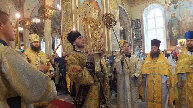 Перед началом богослужения в собор были занесена святыня - мощи святых мучеников Космы и Дамиана Римских, бессребреников и чудотворцев. Святые мощи прибыли к нам из Афонского подворья г. Киева и пробудут до вечера 16 октября.