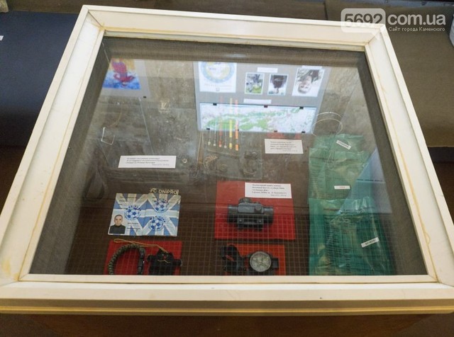 Всего выставка насчитывает около 200 экспонатов из коллекций местного музея и Днепропетровском национальном историческом музее имени Д. Яворницкого. Здесь представлены портреты и фото погибших участников АТО, их личные вещи, предметы обмундирования и амуниции. Экспонаты выставки хранят память о Константине Авдееве, Сергее Слисаренко, Эдуарде Панченко и других каменчанах, которые так и не вернулись домой с войны против российских оккупантов. Здесь также представлены вещи ветеранов АТО, которые проживают в Каменском, детские рисунки, часто служащие своеобразными талисманами для военнослужащих, и многое другое.