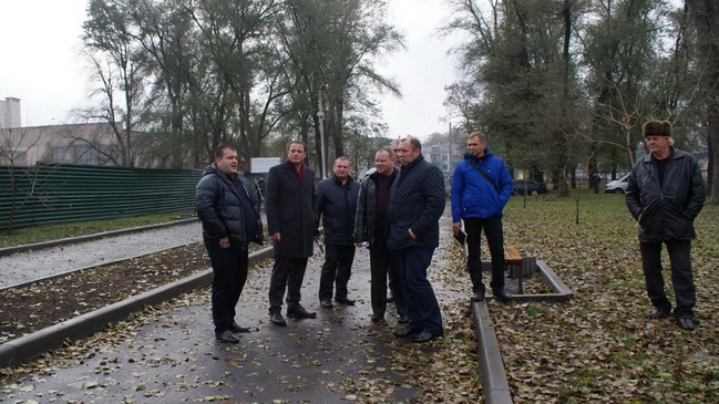 По ходу поездки было сделано несколько остановок. Мэр прошелся по недавно реконструированному скверу за Дворцом культуры имени Горького, проверил санитарное состояние парка, расположенного за Дворцом «Химик».