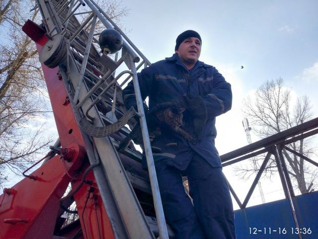 На помощь коту выехали спасатели 7 государственной пожарно-спасательной части на автолестнице. Прибыв на место происшествия, сотрудники ГСЧС с помощью автолестницы сняли животное с дерева и передали владельцу.