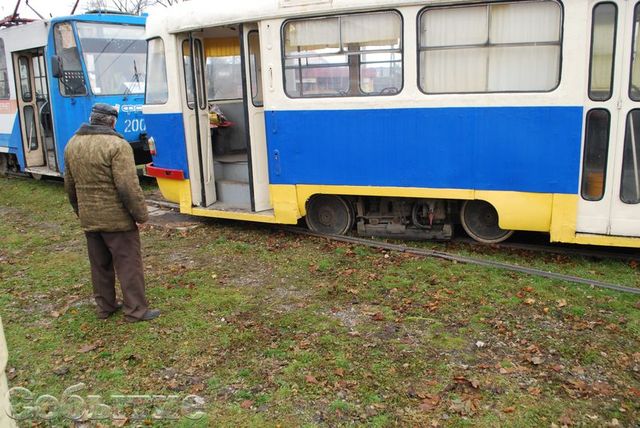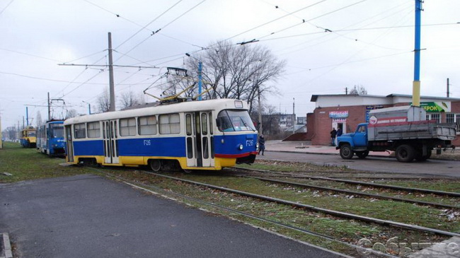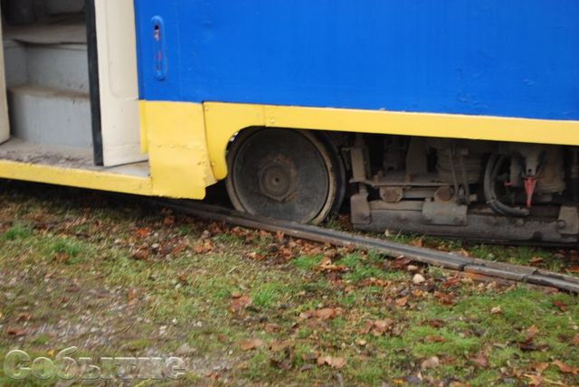 Служебный вагон коммунального предприятия КП «Трамвай» сошел с рельс при попытке поворота. Сотрудниками предприятия были предприняты попытки вернуть транспортное средство на пути с помощью вагона для перевозки людей, которые успехом не увенчались.