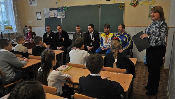 Далее, уже в классе прошла мини пресс-конференция, где каждый из активных школьников мог задать вопрос чемпиону и почетным гостям: советнику мера Руслану Бондаренко, депутату городского совета, председателю ППО «Металлургов» Олегу Нагорному, депутату городского совета, директору СК «Прометей» Владимиру Бабенко, заместителю председателя ППО «Металлургов» Виталию Ровкову, президенту федерации футбола города Эдуарду Коряку.