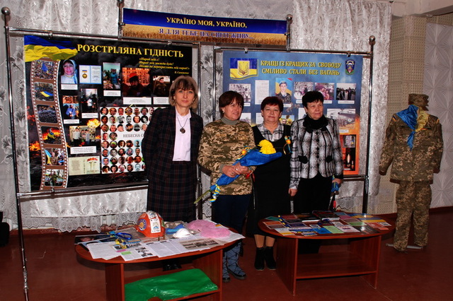 Еще одно мероприятие, посвященное Дню Достоинства и Свободы, прошло в гимназии №39. Ученики заведения встретились с участницей революции Достоинства, членом «Женской сотни Майдана», автором книги «Расстреляное Достоинство», волонтером, бывшим учителем гимназии Светланой Терейковской. Выступая перед школьниками, Светлана Анатольевна подробно и правдиво рассказывала о революционных событиях, вспоминала известных и неизвестных героев Небесной Сотни, восхищалась их мужеством и отвагой. В память о встрече женщина подарила музею гимназии фильм, в съемках которого сама приняла участие, а также особые волонтерские флаги. Ученики гимназии, в свою очередь, подарили гостье и всем присутствующим на мероприятии собственноручно сделанные чернобривцы.