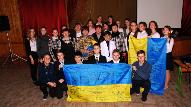 Наконец вокальный коллектив гимназии спел композицию «Мир без войны» о мечте всех без исключения украинцев. На этой оптимистической ноте патриотическое мероприятие завершилось.
