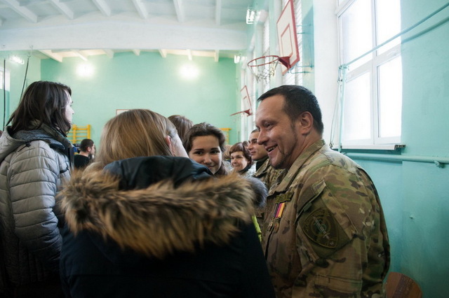 После окончания основной программы гости прошли в кабинет начальной военной подготовки, где прошла очень искренняя, душевная беседа между учениками 10 класса и гостями школы. Участники боевых действий немного приоткрыли занавес военных событий, рассказали о себе, вспомнили моменты из боя. Гости открыто и честно поделились с учениками своим видением таких сложных и важных вопросов, как мир, силу знаний и умением ценить жизнь, спокойствие которые дарят нам те люди, которые, не боясь и не отступая, сражаются на востоке Украины.