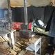 Интерьер пункта обогрева составляют 3 кровати, буржуйка и школьные парты. Здесь же находятся топоры и матрасы, привезенные по просьбе спасателей. Рядом с палаткой установлен биотуалет.