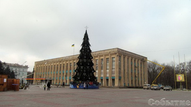 Еще вчера рабочие собирали ее каркас, а сегодня она уже не только зеленая и красивая, но и украшенная новогодними игрушками.
