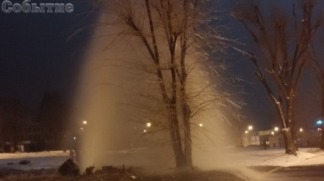 Фонтан высотой в несколько метров вырвался из под земли на проспекте Аношкина в Каменском вечером 15 декабря.