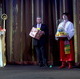 После приветствия первый заместитель вручил подарки. 5-ти одаренным детям были вручены канцелярские принадлежности, а 10 многодетных семей получили наборы посуды. Все дети получили сладости. Торжества продолжило праздничное представление «Все мыши любят сыр».