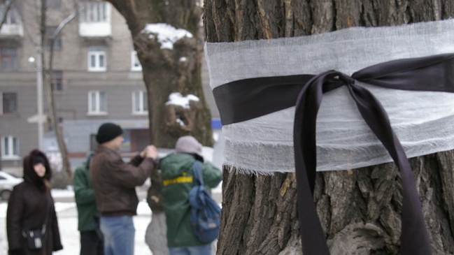 17 декабря 2016 года активисты повязали траурные ленточки на изуродованные деревья по улице Г. Романовой.