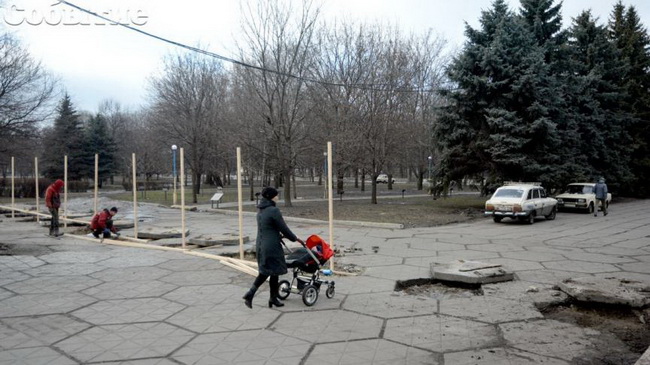 Ограждение протянется от дома детского творчества до горсовета. Пока одна группа рабочих ограждает парк, другая приступила к демонтажу ледового катка, который радовал горожан всю зиму на площади Калнышевского. В скором времени каток должен переехать в центральный парк.