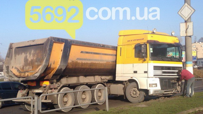 Грузовой автомобиль DAF двигался в направлении города и врезался в электроопору. Фуру «сложило», от удара пострадала левая боковая часть авто. Водитель комментировать ситуацию отказался. Вероятно, нормальному торможению грузового автомобиля препятствовала скользкая дорога. Жертв и пострадавших в результате ДТП нет.
