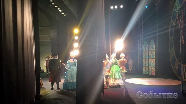 В день нашего посещения в 11 часов на сцене показывают «Золушку». Еще утром сцена была прибрана и монтировщики выставили необходимые декорации.