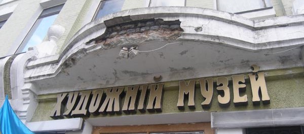 Возле Днепропетровского художественного музея появилась табличка «Опасная зона» и ограничительная лента.