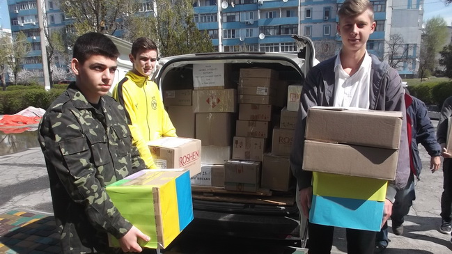14 апреля из пунктов сбора в школах № 9 и 37 посылки для воинов АТО направлены в 25-ю воздушно-десантную бригаду (поселок Зайцево под Горловкой), 43-му батальону (Светлодарска дуга, поселок Мироновское) и в Майорское воинам 54-й бригады через благотворительную организацию «Штаб национальной защиты города Каменского».