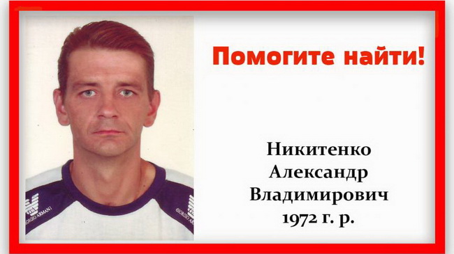 Каменским отделом полиции устанавливается местонахождение без вести пропавшего Никитенко Александра Владимировича, 1972 г. рождения, который 28.04.2017 г., около 05:45, провел свою гражданскую жену на электричку на ж/д вокзал г. Каменского и до настоящего времени домой не вернулся.
