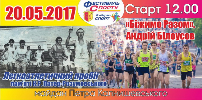 20 мая в Каменском пройдет массовое спортивное мероприятие - «Фестиваль здорового образа жизни», в рамках которого состоится общегородской легкоатлетический пробег памяти выдающегося спортсмена Казимира Романовича Патер-Разумовского.