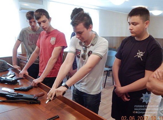 Старший инспектор отдела полиции Александр Коняев рассказал подросткам истории создания пистолета Макарова и автомата Калашникова, их тактико-технические характеристики и продемонстрировал неполную разборку и сборку оружия. Подростки с интересом наблюдали за действиями инспектора и выразили желание попробовать тоже.