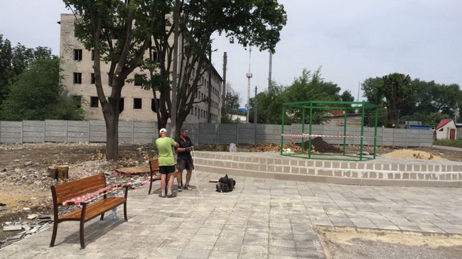 На данный момент здесь ведутся строительные работы. Со стороны частного сектора будущую парковую зону оградили бетонным забором. Специалисты проводят мощение аллей тротуарной плиткой, устанавливают новые скамейки и прочее оборудование.