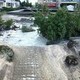 Один из очевидцев рассказал, что сидел на лавочке, как вдруг она стала просто проваливаться. Образовался огромный провал. Вода залила всю остановку «МИР», мощными потоками снесло урны и повалило деревья.