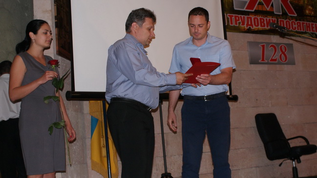 Торжественное собрание по случаю Дня работников металлургической и горнодобывающей промышленности прошло 14 июля в актовом зале инженерного корпуса ПАО «Днепровский меткомбинат».Поздравить металлургов предприятия с профессиональным праздником от имени областной власти приехал советник председателя облсовета Виктор Сергеев, который вручил Почетный знак председателя Днепропетровского областного совета начальнику управления железнодорожного транспорта ДМК Сергею Слабоусу.