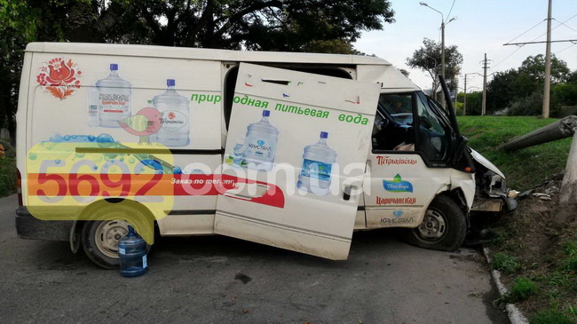 В Каменском водитель микроавтобуса, пытаясь избежать столкновения с мотоциклисткой, врезался в железобетонный столб.