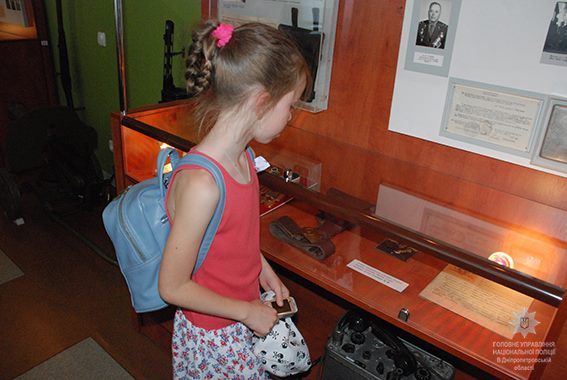 Також діти звернули увагу на особисті речі працівників поіліції, відзнаки, зразки озброєння та форменого одягу різних історичних періодів.