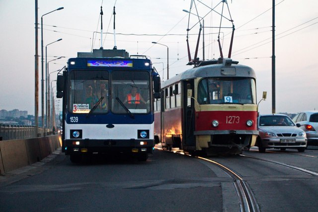 Авария произошла около 19:10. Трамвай двигался по Старому мосту в сторону левого берега. Fiat ехал в ту же сторону. Как рассказывает водитель трамвая Максим, водитель автомобиля неожиданно вывернул перед вагоном на пути.