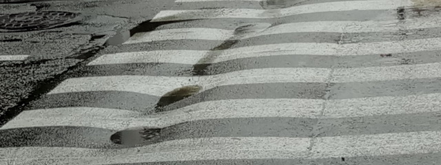 Дорожное покрытие напротив кинотеатра Шевченко похоже на застывшие волны. В дождливую погоду в промежутках между этими «волнами» скапливается вода. Все эти изменения на дороге произошли после проведения капитального ремонта ливневой канализации, который очень тщательно, как заявляло руководство Каменского, контролировался областным департаментом жилищно-коммунального хозяйства.