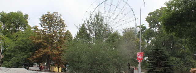 Аттракцион еще разобран: не установлены сидения, и продолжаются технические работы. Но, ко дню открытия парка, «Колесо обозрения» будет готово.