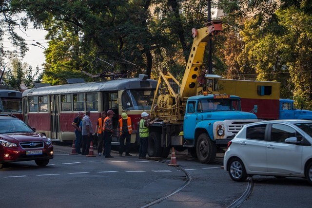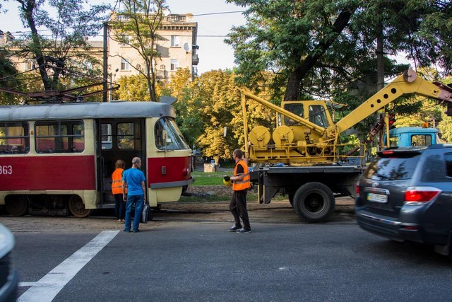 На Пушкина трамвай сошел с рельсов: образовалась пробка