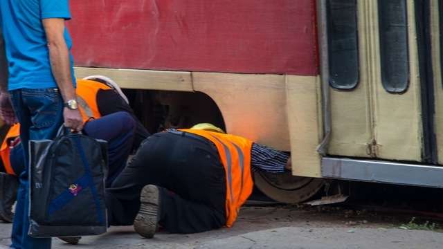 Как сообщили работники коммунальной службы, у трамвая оторвало кардан из-за проблем с редуктором.