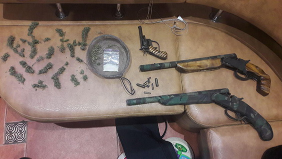 У 35-летнего мужчины изъяли 20 г марихуаны, 50 г метамфетамина, 2 обреза охотничьего ружья, самодельный малокалиберный пистолет и 15 патронов.
