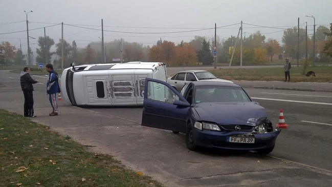 В четверг, 19 октября, на улице Панаса Мирного столкнулись Opel и Газель. Один из автомобилей перевернулся.