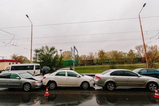 Автомобили Mazda, Kia и Toyota стояли на съезде со Старого моста на красный сигнал светофора, а Nissan ехал за ними. Последний въехал в Toyota и по цепной реакции пострадали Mazda и Kia.