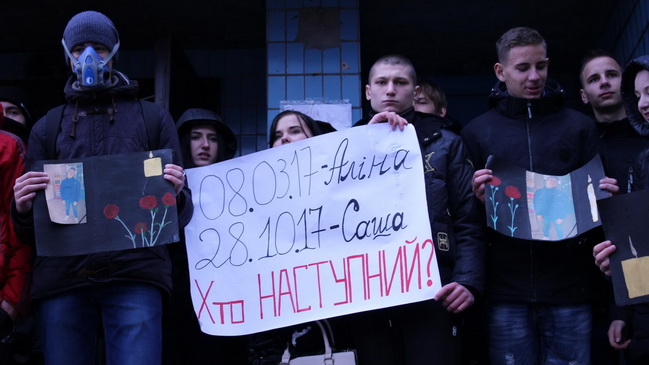 В четверг, 2 ноября, около пятидесяти человек собрались у центрального офиса КП «Управляющая компания по обслуживанию жилого фонда». На митинг с требованием наказать виновных в смерти Алины Карпенко и Александра Кононенко вышли, в основном, подростки: сокурсники, друзья и знакомые погибших.