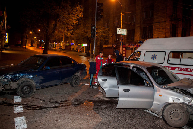 В пятницу, 17 ноября, около 00:15, на перекрестке проспекта Дмитрия Яворницкого и улицы Михаила Грушевского столкнулись два автомобиля. Пострадавших девушек забрали кареты «скорой» помощи.