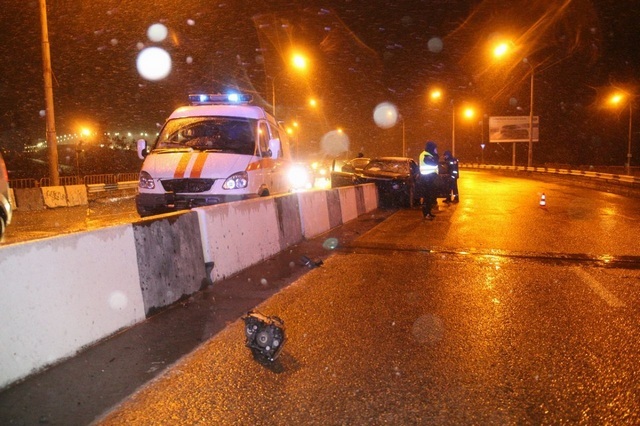 Возле Южного моста Toyota Camry влетела в отбойник: водитель погиб, пассажирку увезла «скорая»