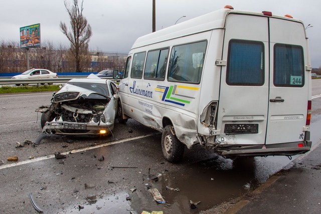 18 декабря около 13:00 возле магазина «Мetro» в районе Подгородного, Mercedes на еврономерах въехал в маршрутное такси №244. Вследствие ДТП пострадало три человека.