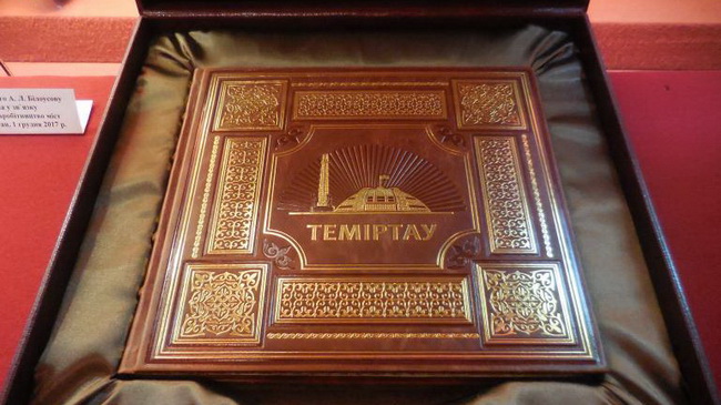 Новый экспонат, который занял почетное место в музейной экспозиции, имеет свою историю. Как мы сообщали, в конце ноября – начале декабря минувшего года в Казахстане с официальным визитом побывал городской голова Андрей Белоусов. Мер Каменского принял участие в торжественных мероприятиях по случаю государственного праздника Дня первого президента страны Нурсултана Назарбаева, который, как известно, является Почетным гражданином Каменского, а также провел ряд деловых встреч и успешных переговоров. В частности, со своим коллегой – Галымом Ашимовым, акимом г. Темиртау, Андрей Белоусов подписал Меморандум о сотрудничестве.