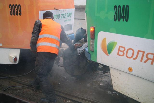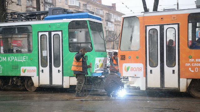 15 марта на пересечении Пастера и проспекта Яворницкого трамвай № 1 сошел с рельсов. Авария парализовала движение электротранспорта.